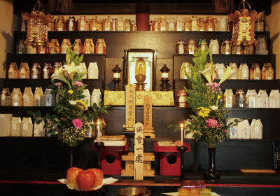 本堂内には、本骨(喉仏様)を納める永代納骨処を設けております。
